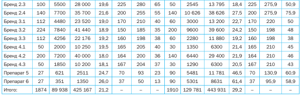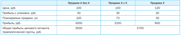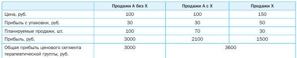 Фармацевты после определения потребности клиента в препарате из данной товарной группы старались переключать клиента на Бренд 2.1, объясняя покупателю преимущества последнего. В случае отказа клиента от этого препарата, фармацевты предлагали Препарат 1. При этом стоимость «решение проблемы» данного заболевания для покупателя снижалась на 100 рублей, а прибыль с продажи упаковки для аптеки повышалась с 81 до 86 рублей.